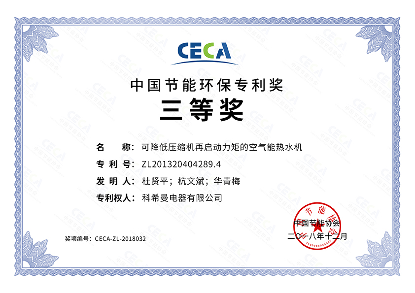 中國(guó)節(jié)能環(huán)保專利獎(jiǎng)三等獎(jiǎng)