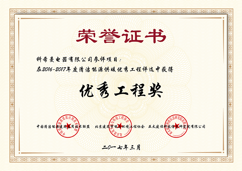 全國(guó)清潔能源供暖優(yōu)秀工程獎(jiǎng)