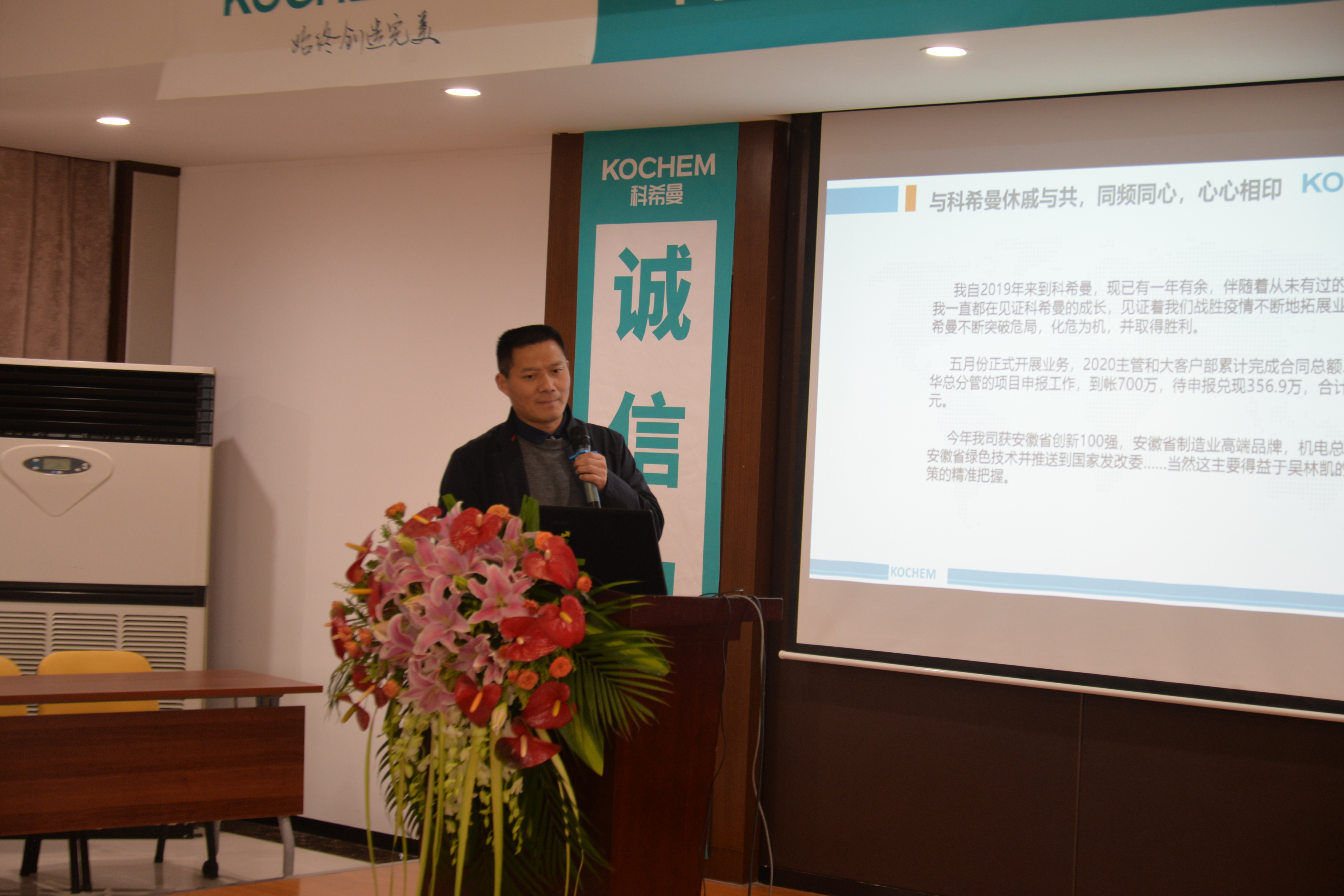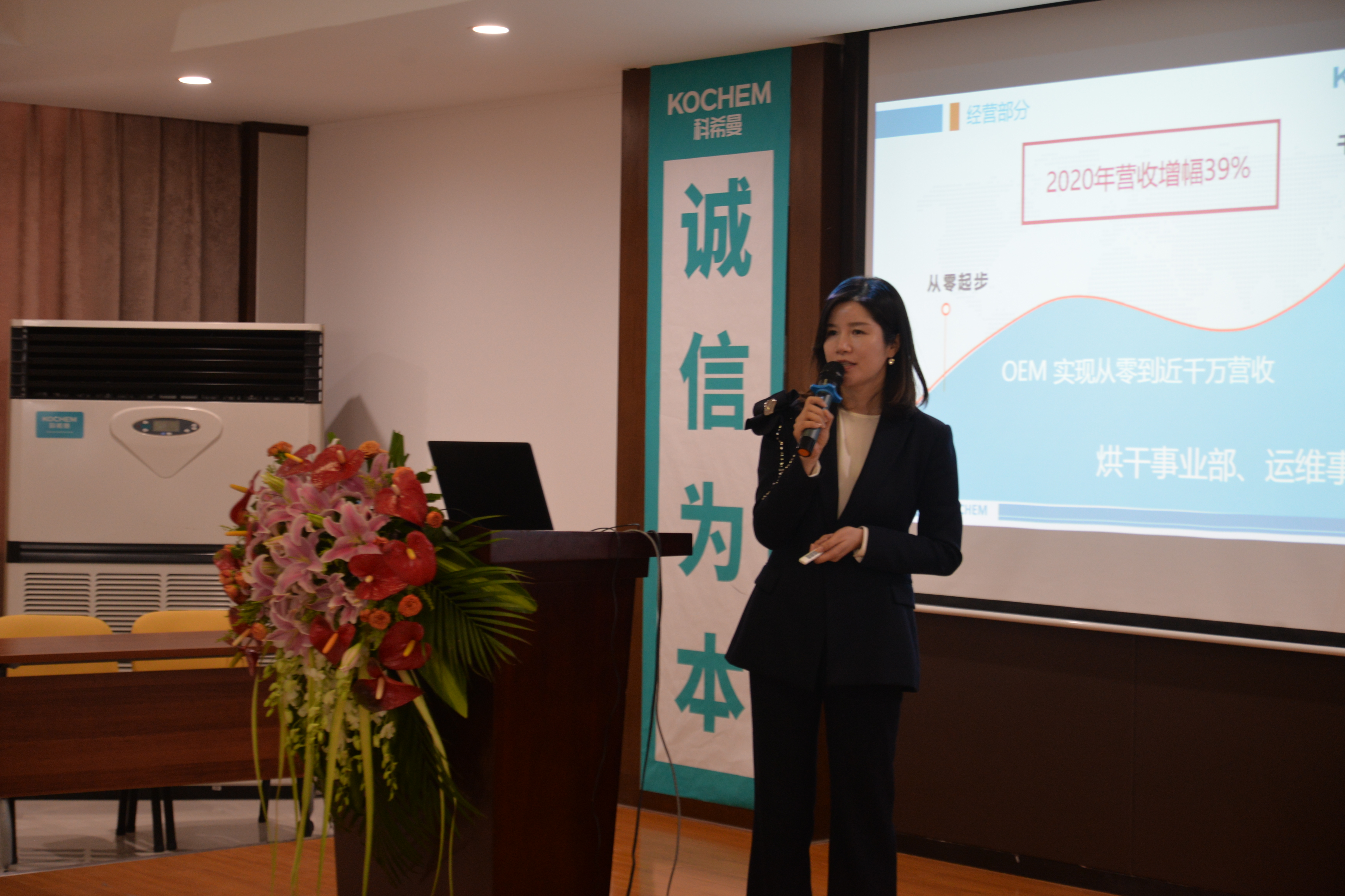 科希曼CEO華青梅女士上臺致辭,并進行公司總體工作匯報。匯報全面總結(jié)了科希曼2020年所創(chuàng)造的機遇與成績、所遇到的困難與挑戰(zhàn),是所有員工的團結(jié)奮進讓科希曼能夠在疫情的沖擊下穩(wěn)中求進,科希曼少不了在座每一個人的共同努力。華總對科希曼寄予了厚望,也對科希曼的未來充滿信心。