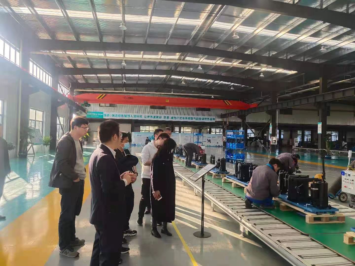 科希曼黨委書記楊世軍和大客戶負責人程磊等人帶領眾人參觀了公司展廳。先從公司宣傳片切入,講述我們的核心空氣源熱泵技術,接著向來賓介紹了科希曼的發(fā)展歷程及公司成就,還重點介紹了幾款科希曼的熱門產(chǎn)品。