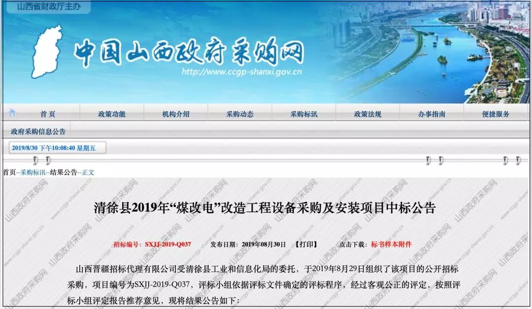 根據(jù)中國山西政府采購網(wǎng)公布顯示,科希曼實(shí)力中標(biāo)清徐縣2019“煤改電”改造工程設(shè)備采購及安裝項(xiàng)目。