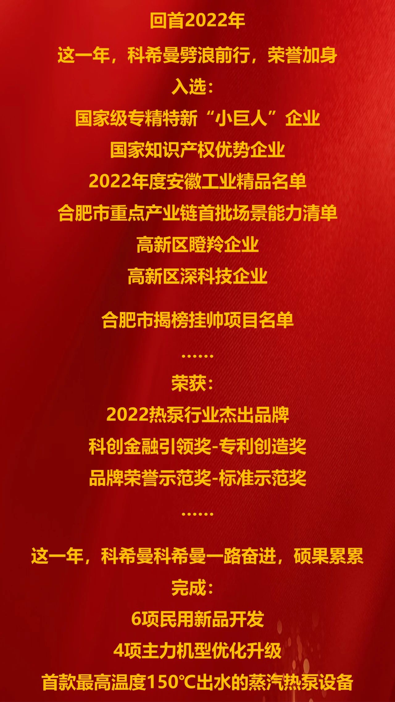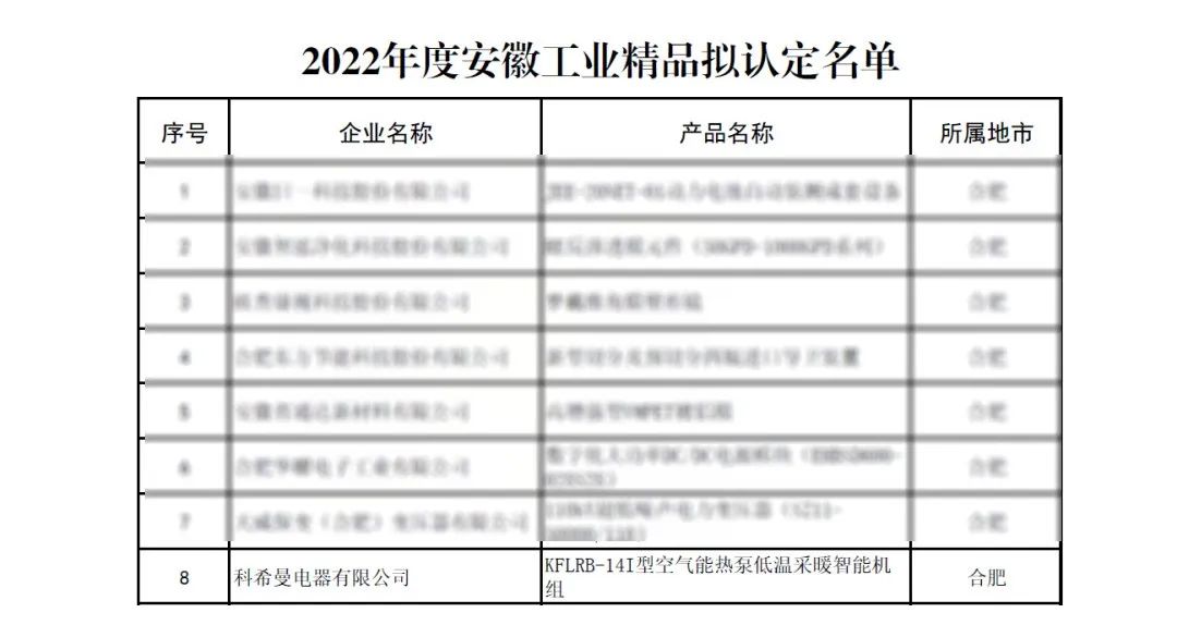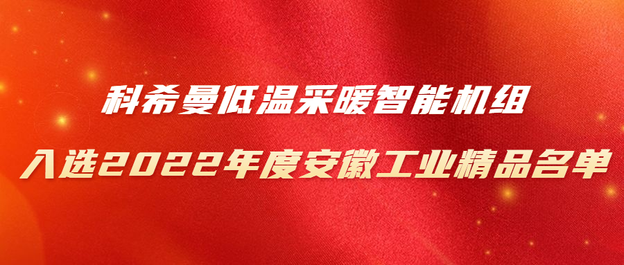 近日,安徽省經(jīng)濟(jì)和信息化廳發(fā)布關(guān)于2022年度安徽工業(yè)精品擬認(rèn)定名單的公示,經(jīng)企業(yè)申報、各市推薦、專家評審等程序,認(rèn)定科希曼電器有限公司研發(fā)的KFLRB-14I型空氣能熱泵低溫采暖智能機(jī)組為2022年度安徽工業(yè)精品。