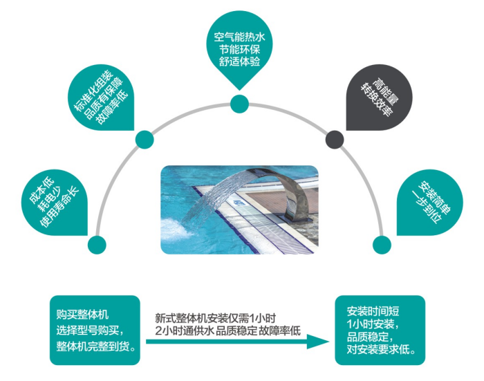大匹數(shù)一體化設計,施工安裝時只需對接補水管及熱水供水管, 節(jié)省安裝時間、提高安裝便捷度與可靠度。集中化設計,外形整潔美觀整潔,系統(tǒng)及冷熱水接口布置于主機 一側(cè),方便預留檢修空間,可充分利用現(xiàn)場空間放置設備;設備補水口與熱水出口處均有艙室,可根據(jù)客戶的需要內(nèi)裝軟化 水設備以及熱水供水設備;科學的排污、排氣、溢流設計以及循環(huán)口設計,帶來更加便捷、 放心的設備運行維護保障。