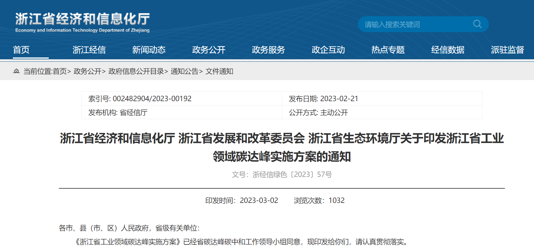 3月2日,浙江省經(jīng)信廳等三部門發(fā)布關(guān)于印發(fā)浙江省工業(yè)領(lǐng)域碳達(dá)峰實施方案的通知,《方案》明確主要目標(biāo)為,“十四五”期間,產(chǎn)業(yè)結(jié)構(gòu)與用能結(jié)構(gòu)優(yōu)化取得積極進(jìn)展,能源資源利用效率大幅提升,研發(fā)、示范、推廣一批減排效果顯著的低碳零碳負(fù)碳技術(shù)工藝裝備產(chǎn)品,組織實施節(jié)能降碳技術(shù)改造,筑牢工業(yè)領(lǐng)域碳達(dá)峰基礎(chǔ)。到2025年,規(guī)模以上單位工業(yè)增加值能耗較2020年下降16%以上,力爭下降18%;單位工業(yè)增加值二氧化碳排放下降20%以上(不含國家單列項目);重點領(lǐng)域達(dá)到能效標(biāo)桿水平產(chǎn)能比例達(dá)到50%;建成500家綠色低碳工廠和50個綠色低碳工業(yè)園區(qū)。
