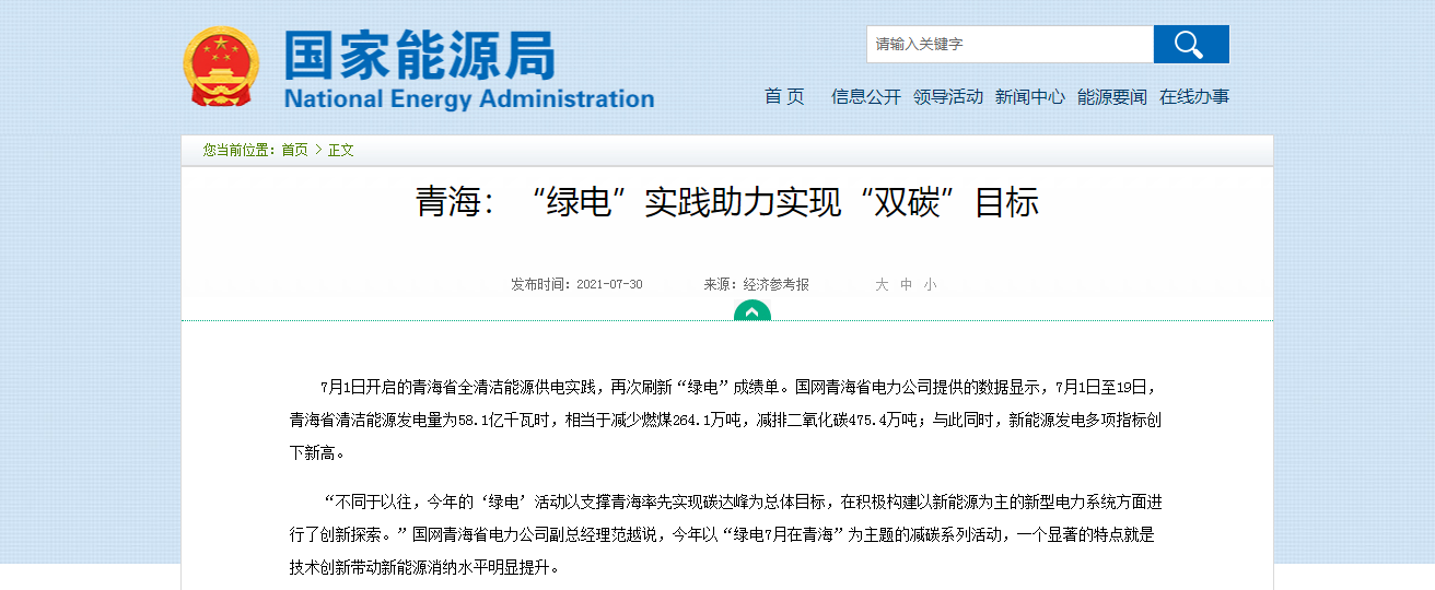 7月1日以來,青海新能源日均發(fā)電量1.08億千瓦時,同比增長54.3%;新能源發(fā)電量占總發(fā)電量的33.1%、同比提升8.7個百分點,占總用電量的47.9%、同比提升11.9個百分點;7月4日新能源最大出力962萬千瓦,超過當(dāng)時全省用電負(fù)荷。