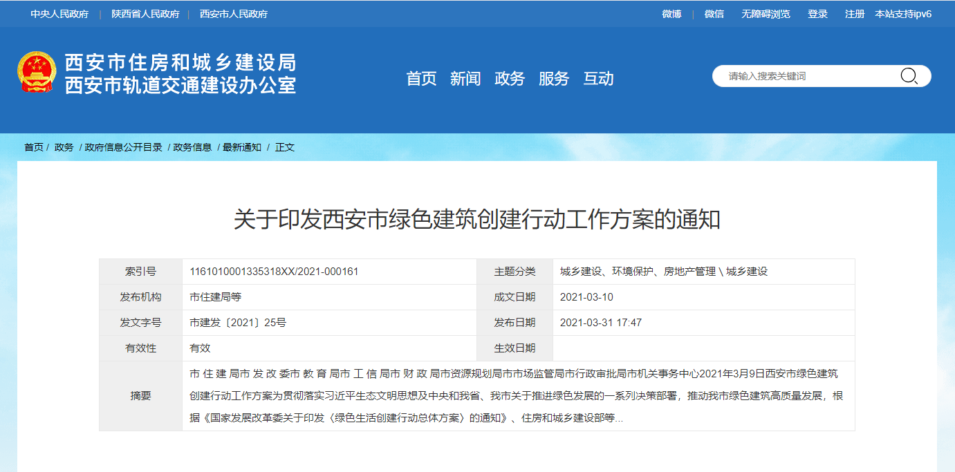 為貫徹落實(shí)習(xí)近平生態(tài)文明思想及推動(dòng)綠色建筑高質(zhì)量發(fā)展,西安市住房和城鄉(xiāng)建設(shè)局發(fā)布了關(guān)于《印發(fā)綠色建筑創(chuàng)建行動(dòng)工作方案的通知》,通知指出應(yīng)拓展可再生能源在建筑領(lǐng)域的應(yīng)用范圍,政府辦公建筑和大型商場(chǎng)、賓館飯店、醫(yī)療衛(wèi)生、學(xué)校等公共建筑,應(yīng)優(yōu)先采用至少一種可再生能源。
