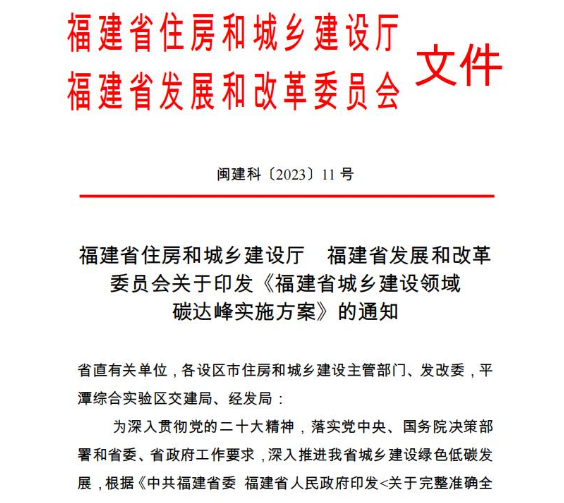 福建省住房和城鄉(xiāng)建設(shè)廳發(fā)布關(guān)于印發(fā)《福建省城鄉(xiāng)建設(shè)領(lǐng)域碳達峰實施方案》(以下簡稱《方案》)的通知。